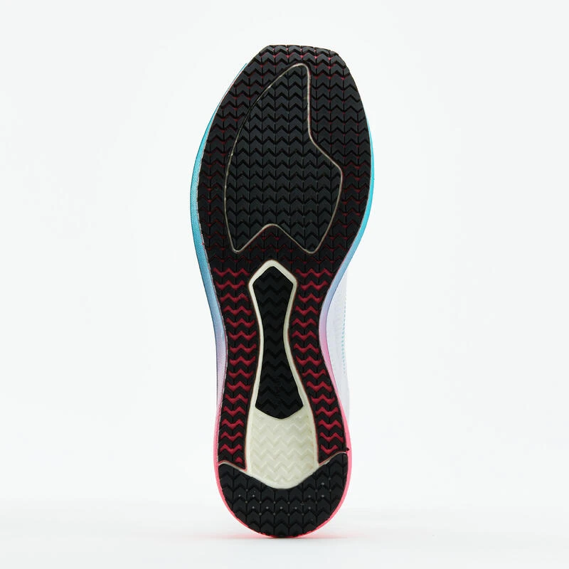 Notre semelle a Ă©tĂ© pensĂ©e comme un pneu de voiture pour courir efficacement sans perte de contrĂ´le mĂŞme lorsqu’il pleut. La nouvelle gĂ©omĂ©trie de la semelle alliĂ©e Ă un nouveau caoutchouc assure Ă la KIPRUN KD 800 une excellente adhĂ©rence sur sol humide, mĂŞme en vitesse de pointe.